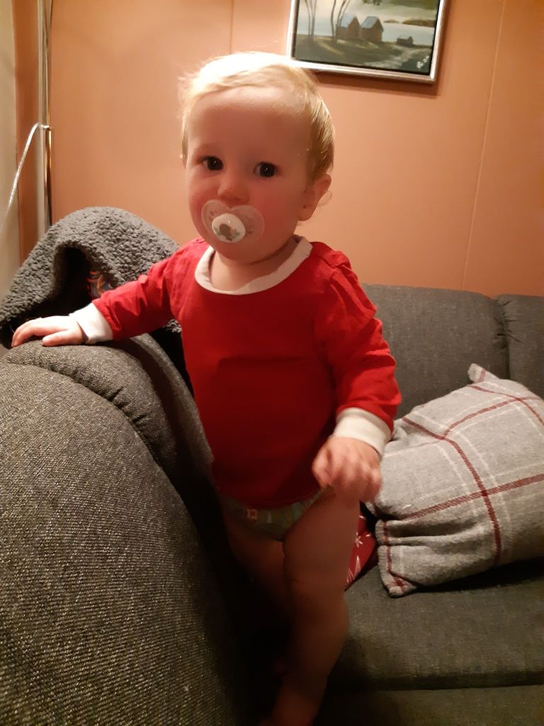 Så vi fant ut at vi bare kjører på med nattpotting uten bleie, og kledde på en treningstruse og la han. Jeg la et par lag med håndklær i sengen i tilfelle uhell, og tok en ekstra stabel håndklær nært sengen hvis de måtte byttes iløpet av natten, da kunne jeg bare kjapt hive de våte på gulvet og legge på nytt. Første natten sov han sammenhengende og dypt i 5 timer(!) før jeg løftet han opp sovende, gikk inn på badet med lyset av, tok ned trusen og holdt han frem og sa: nå kan du tisse (som vi bruker å si). Han tisset, og ble lagt igjen, sov like godt!